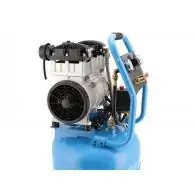 Bezolejowy kompresor tłokowy LMVO 40-250 SilentKompaktowy i mobilnyKompresor LMVO 40-250 Silent to kompaktowe urządzenie o pionowym układzie zbiornika o pojemności 37,5l. Małe gabaryty i układ zbiornika pozwalają na łatwe przechowywanie i użytkowanie także w pomieszczeniach o ograniczonym miejscu. Jest idealnym rozwiązaniem dla osób posiadających mały garaż lub pomieszczenie gospodarcze. Wygodny uchwyt i duże koła ułatwiają przemieszczanie sprężarki także po nieutwardzonych podłożach.Bezolejowy blok sprężarkowyInnowacyjna seria pomp tłokowych LMO Airpress to bezolejowe jednostki sprężające. Brak środków smarnych pozwala na uzyskiwanie zdecydowanie lepszej jakości sprężonego powietrza oraz eliminuje czynności konserwacyjne w tym zakresie. Zintegrowane z silnikiem elektrycznym stanowią zwartą konstrukcję. Przeniesienie napędu jest skonstruowane tak aby obroty pompy były na poziomie tylko 1400 obr./min. a dwutłokowy blok sprężający ma wydajność na ssaniu aż 240 l/min. To w efekcie daje wydajność rzeczywistą na poziomie 150 l/min.