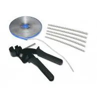 Komplet do zarabiania opasek na osłony przegubówZestaw zawiera: - automatyczne szczypce do obcinania i zaciskania taśmy - 56 m taśmy stalowej - 150 zaciskówW sprzedaży posiadamy osobno taśmę i zaczepyZastosowanie: Uniwersalne