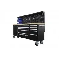 Wózek wyposażony jest w ergonomiczne uchwyty z aluminium oraz 12 uchwytów umożliwiających organizację narzędzi.