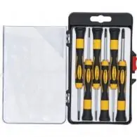 • stal chromowo wanadowa • rękojeści 2 materałowe • wersja elektroniczna • w plastikowym pudełkuW zestawie:• płaskie: - 0.3 x 1.4 x 50 mm - 0.4 x 2.0 x 50 mm - 0.4 x 2.5 x 50 mm• krzyżakowe PH: - PH00 x 50 mm - PH0 x 50 mm - PH1 x 50 mm.