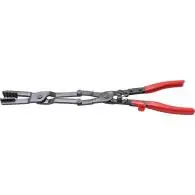 Wykonane we stali chromowo molibdenowej, • Bardzo uniwersalne do większosci opasek sprężynowych zaciskowych, umożliwiają chwytanie czołowe i boczne, • Z podwójnym przegubem, • Długość całkowita: 430 mm, • Z funkcją grzechotki, • Zakres roboczy 0 - 50 mm,