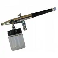 Aerograf zasilany bocznie z mniejszego, górnego zbiorniczka z metalu lub większego dolnego wykonanego ze szkła. Ruchome połączenie zbiorniczków pozwala na pracę w różnych płaszczyznach. Górny zbiorniczek posiada wieczko zabezpieczające przed wylaniem farby.