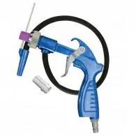Pistolet do piaskowania z przewodem ssącym. Pistolet wyposażony jest w przewód ssący o długości 1m zakończony metalową końcówką (do wbicia w materiał do piaskowania) . Na wejściu zamontowana uniwersalna złączka pozwalająca wpiąć się we wszystkie szybkozłączki dostępne na naszym rynku. Pistolet posiada w zestawie dwie dysze, metalową i ceramiczną, obie o średnicy 5,5 mm.