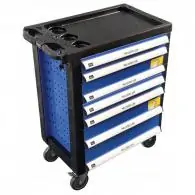 Wózek wyposażony w 7 pojemnych szuflad na masywnych prowadnicach. Wbudowany zamek na kluczyk, blokujący wszystkie szuflady. Duże koła z hamulcem.